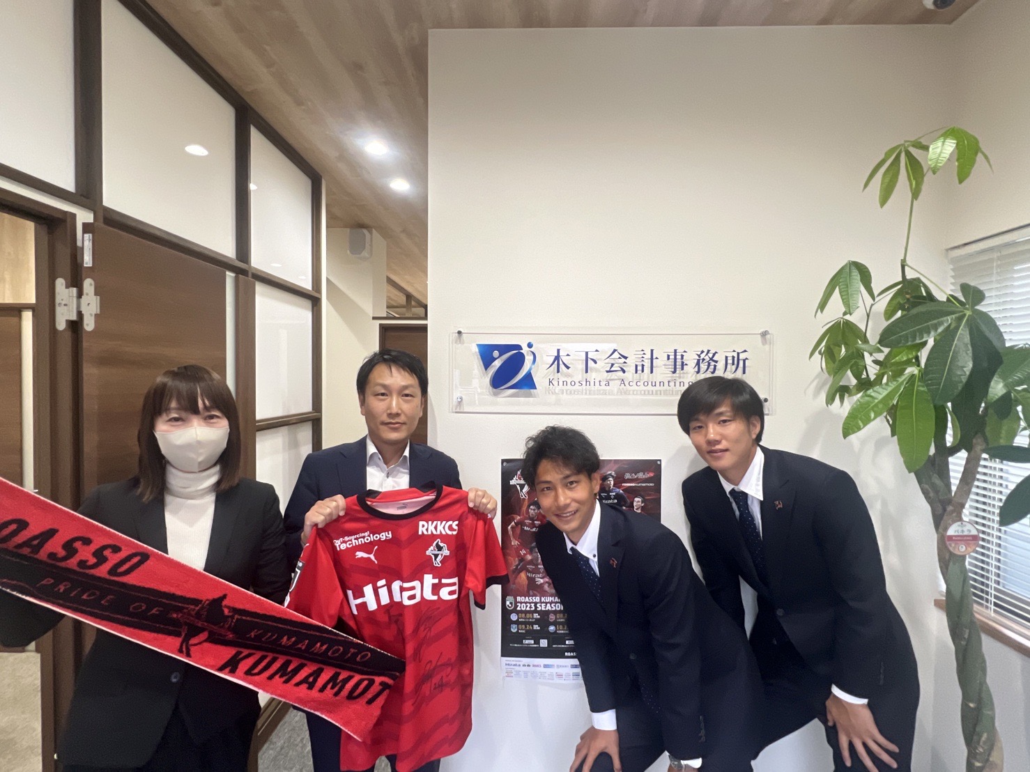2023-12-01 トピックス ロアッソ熊本より表敬訪問を受けました。 本日はロアッソ熊本より表敬訪問をしていただきました。 江崎巧朗選手、岡崎慎選手と楽しい時間を過ごさせて頂きました。 わざわざお越しいただいて、本当にありがとうございました。 1年間本当にお疲れさまでした。 来年も全力でサポートさせていただきます!