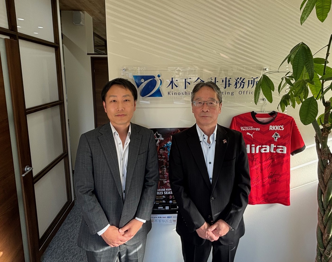 2024-01-11 お知らせ ロアッソ熊本とサポートカンパニーの継続更新をしました。 今年度もロアッソ熊本のサポートカンパニーを継続いたします。 他のクラブチームと比較してロアッソ熊本はスポンサー収入が圧倒的に足りていません。 今後も熊本のスポーツ振興のため、弊所はできる限りの支援を行います。 本日はロアッソ熊本の藤本社長にお越しいただきました。 今後のクラブ運営について熱く語ってきただきました。 今年度もよろしくお願いいたします。